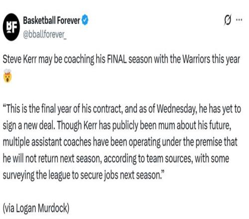 曝科尔下赛季可能离开勇士!合同年仍未续约助教已经开始找工作